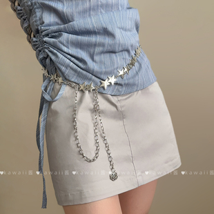 y2k银色星星腰链配裙子装 链配细腰带腰封连衣裙收腰 饰金属链条裤