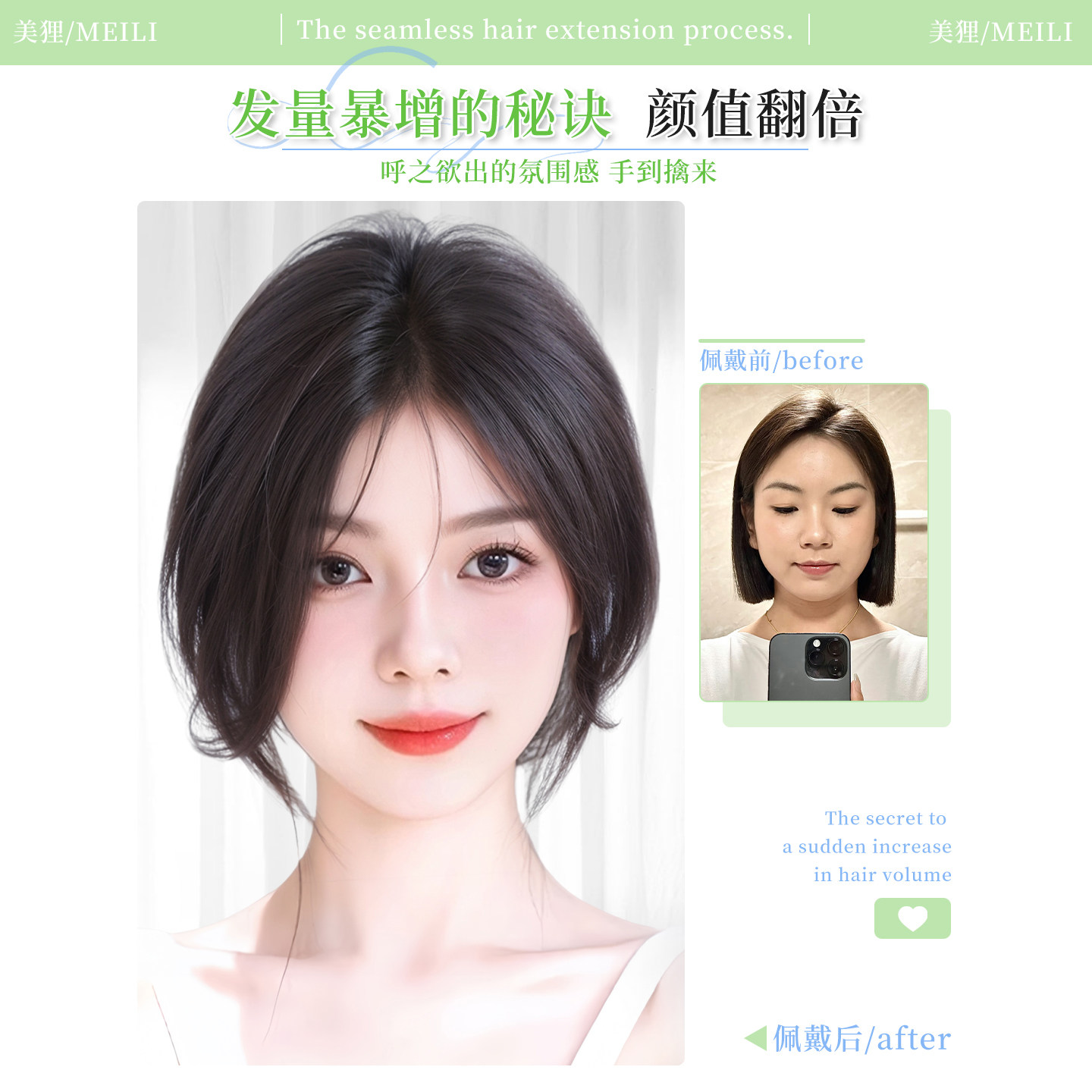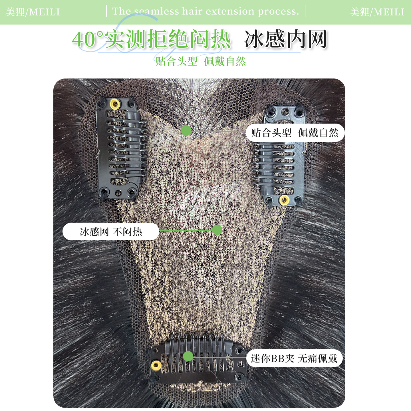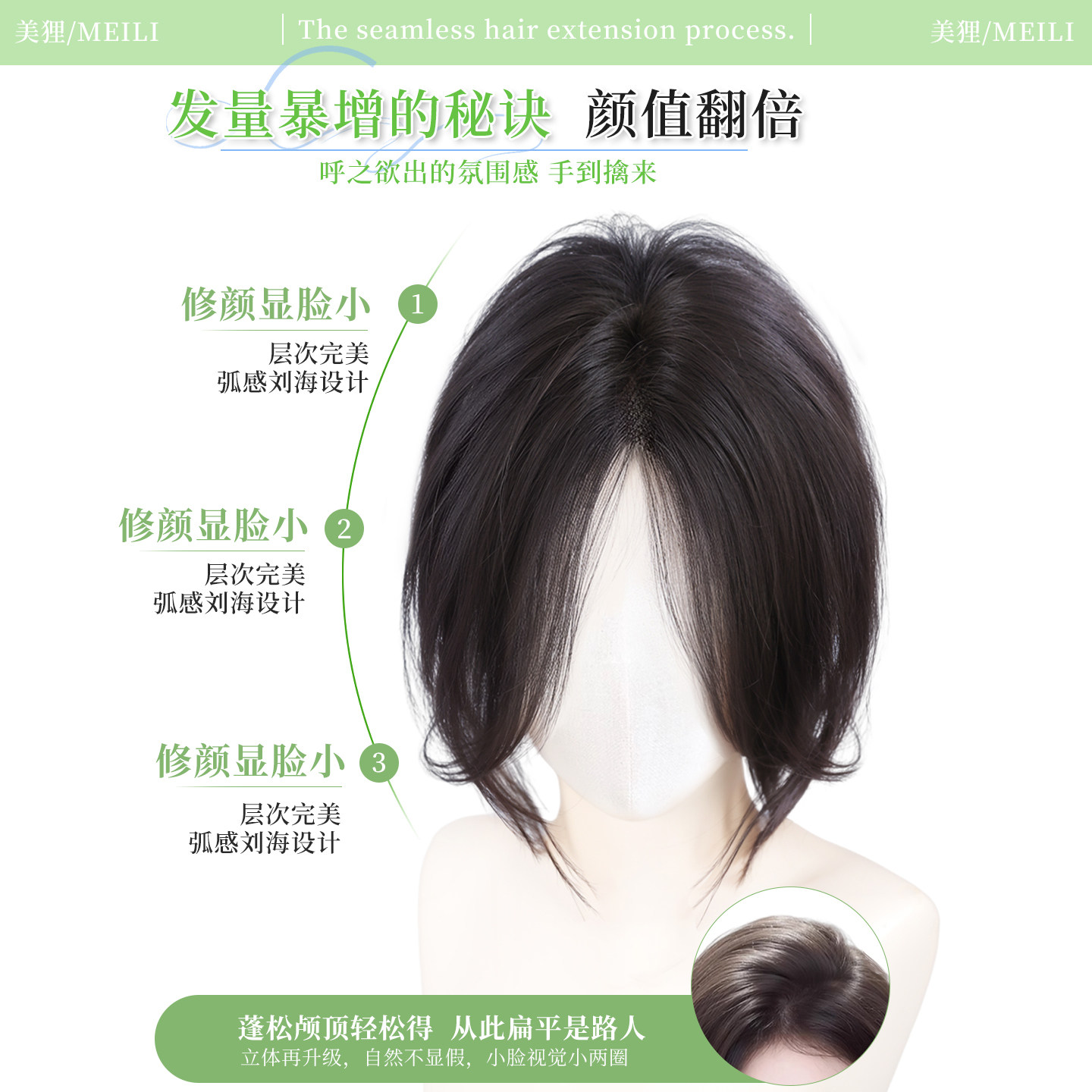 刘海片 高颅顶假发片女增发量蓬松真发遮头顶白发 双递针法式 美禾