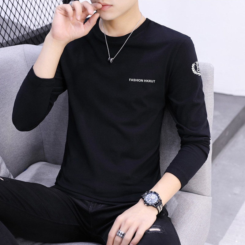 ins男士 春季 圆领纯棉T恤 长袖 印花青少年个性 休闲内搭修身 新款