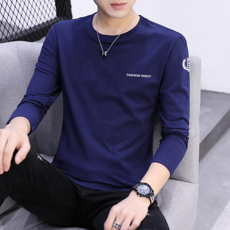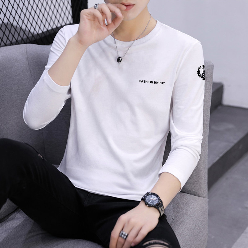 ins男士 春季 圆领纯棉T恤 长袖 印花青少年个性 休闲内搭修身 新款由