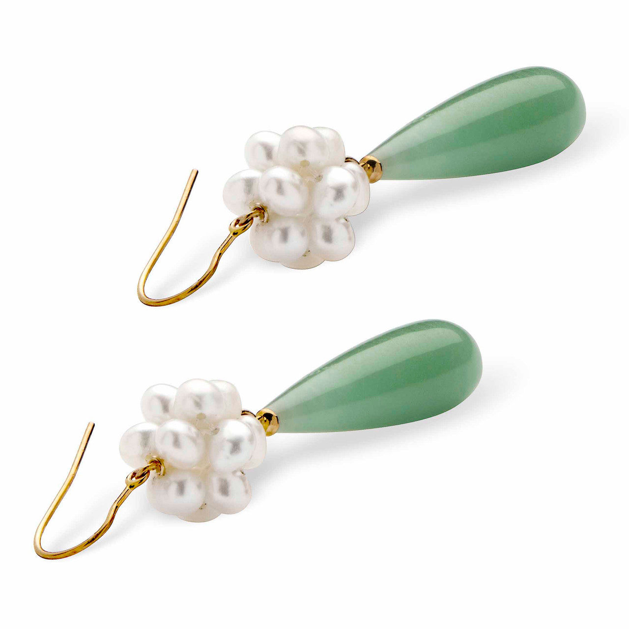 黄金 翡翠 珍珠 10K金 48315 金玉满堂多宝石穿孔垂坠耳饰美国代购