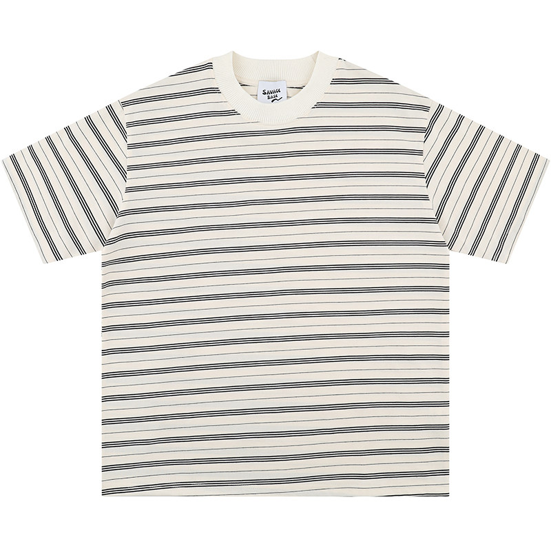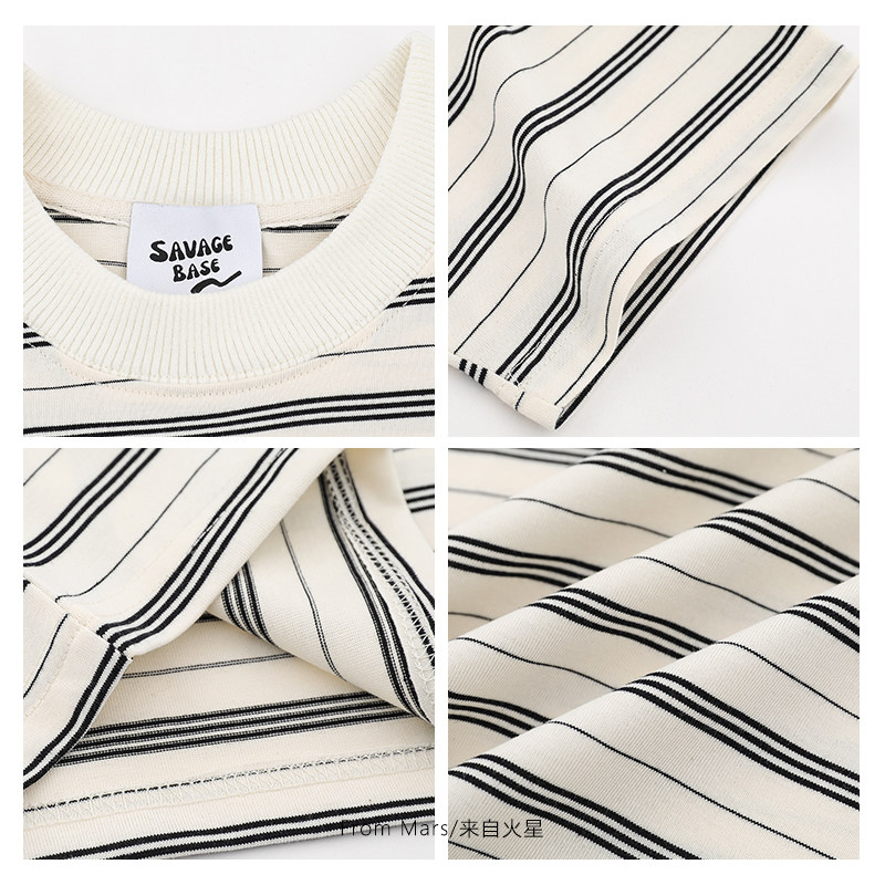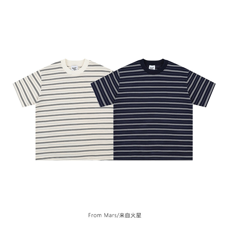 From 重新安排 潮牌条纹拼接圆领宽松bf百搭休闲男女短袖 T恤 Mars