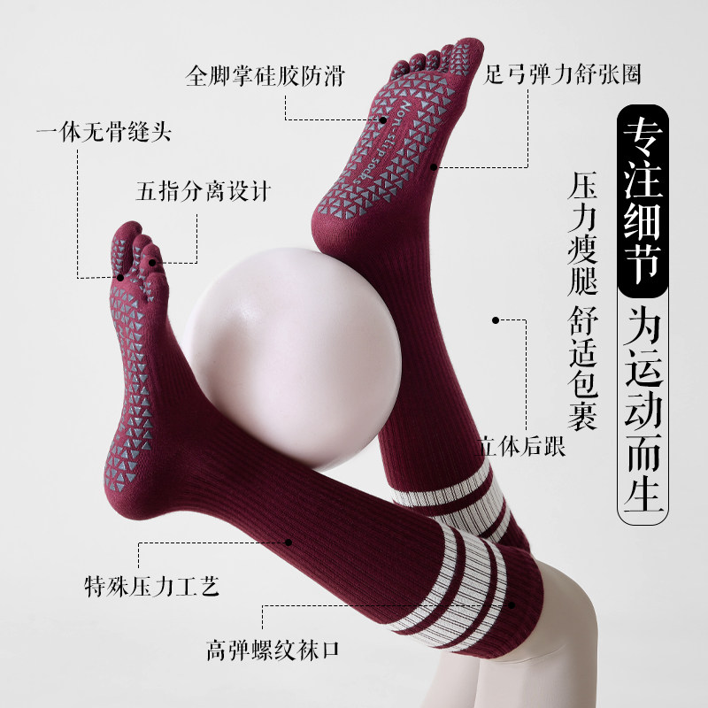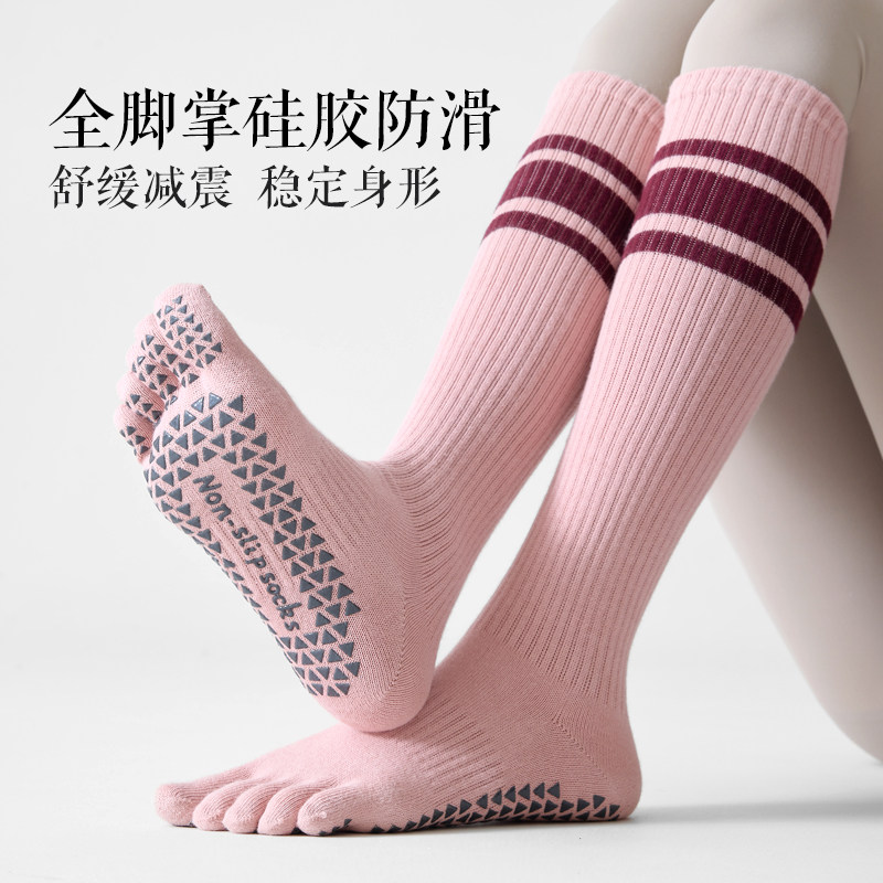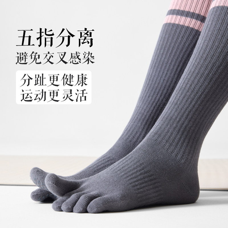 五指瑜伽袜子女专业运动普拉提防滑健身压力长筒袜跑步跳绳小腿袜