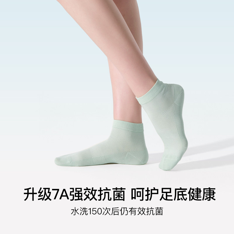 蕉内银皮301S袜子女中筒袜防臭运动透气短袜春夏船袜棉袜 10A抗菌