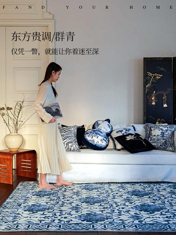 蜡笔派青花进口羊毛地毯新中式 客厅卧室床边毯P 国补再减15%由