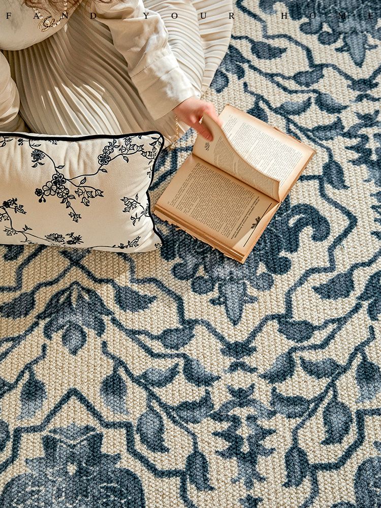蜡笔派青花进口羊毛地毯新中式 客厅卧室床边毯P 国补再减15%