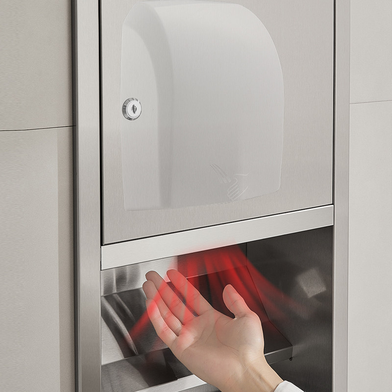 墙擦抽纸箱酒店商用 不锈钢三合一纸巾盒烘手器垃圾桶卫生间嵌入式由