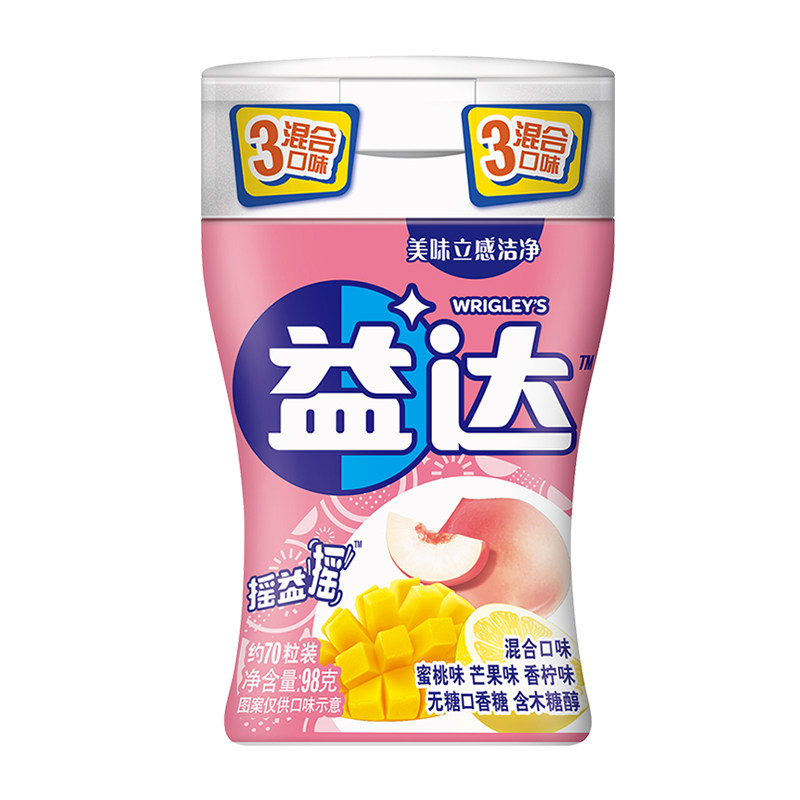 益达无糖木糖醇混合果味口香糖98g×1瓶清新口气糖果休闲小零食