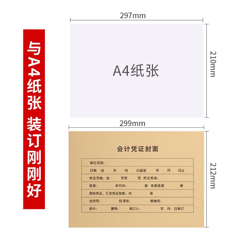 买五送一50套大号a4凭证封面会计凭证封面A4记账凭证封面a4凭证盒档案收纳盒硬盒大号牛皮纸装 可定制 订封皮