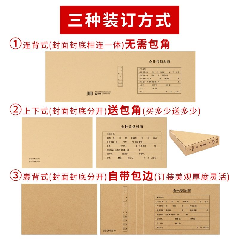 A4凭证封面牛皮纸会计记账凭证装 连背一体加厚档案记帐封皮封底竖版 裹背式 电脑送包角 订封面大号横版