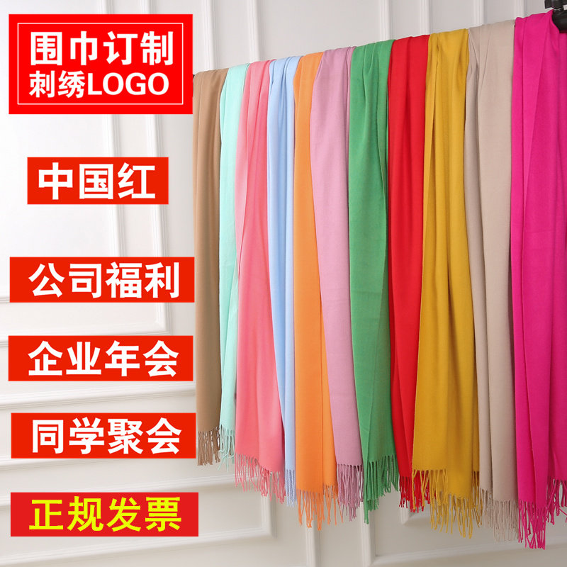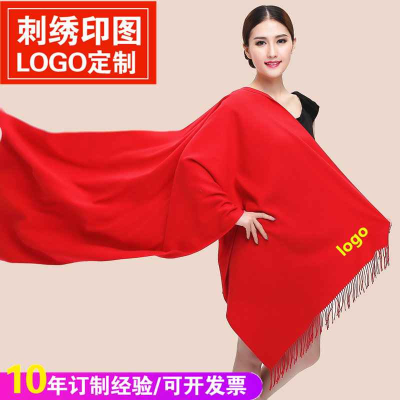 中国红围巾定制刺绣LOGO男女印字同学聚会年会活动大红色庆典围脖由