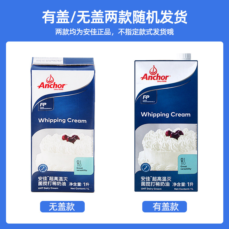 安佳淡奶油1L新西兰进口动物性稀奶油易打发生日蛋糕裱花家用烘焙