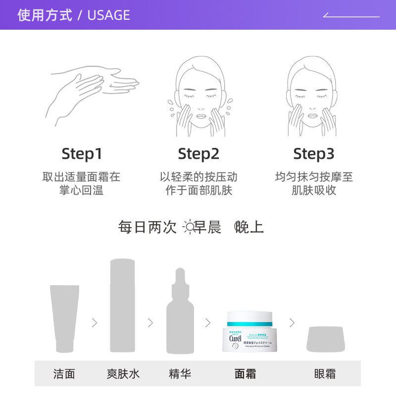 Curel珂润补水保湿 面霜敏感干燥肌可用40g润肤乳滋润修护 自营