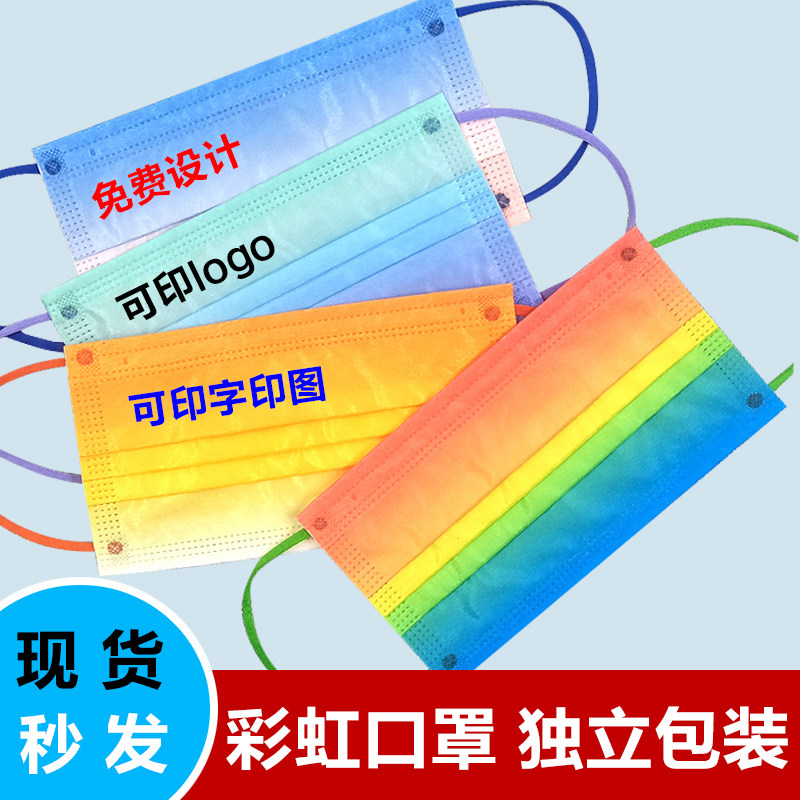 彩虹渐变网红一次性口罩定制logo印图案文字广告口罩定做 ins新款