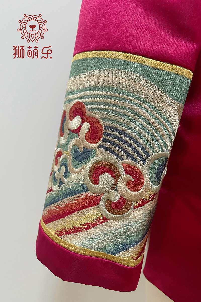 狮萌乐高端感酒红刺绣乘风破浪好运男童国潮儿童拜年服新年唐装由