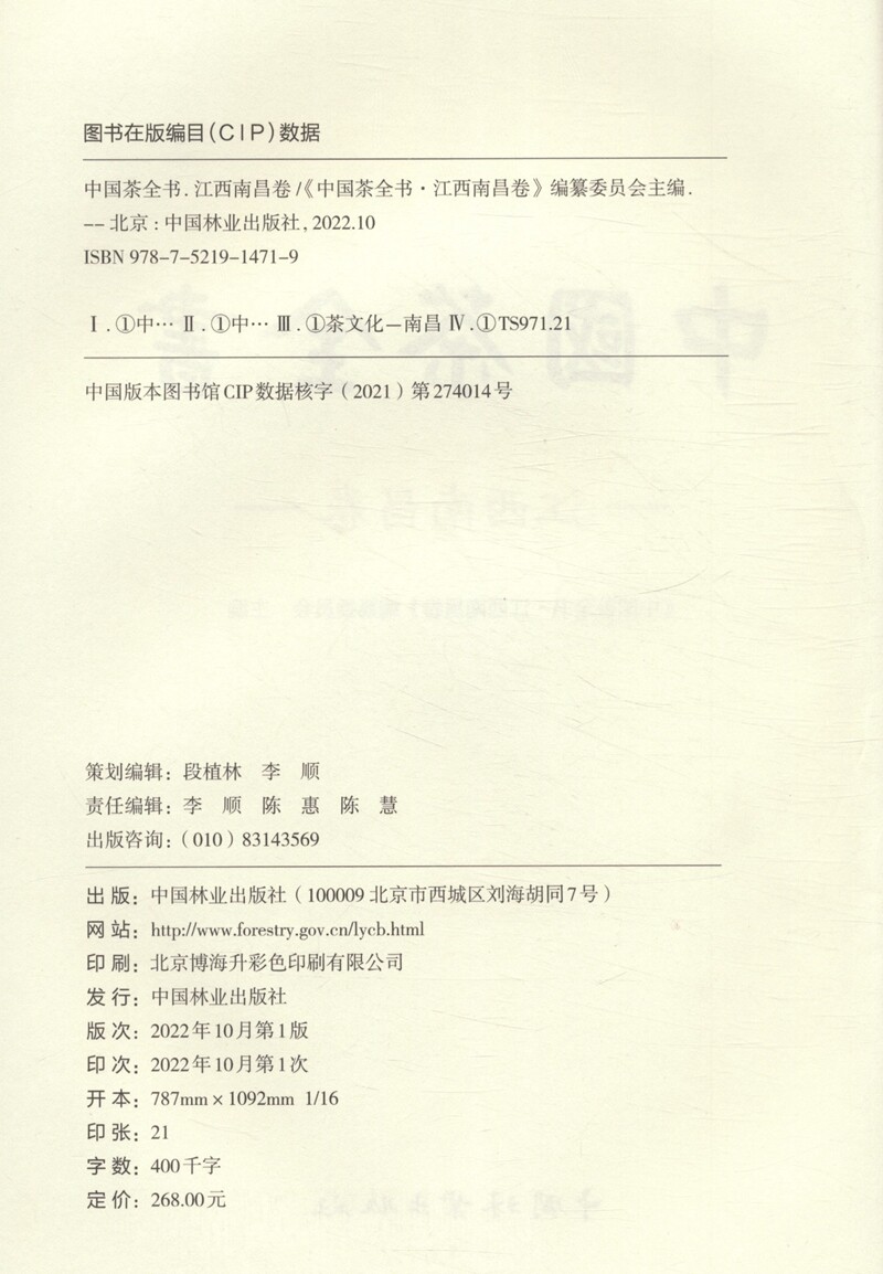 中国林业出版 社 1471 中国茶全书·江西南昌卷由