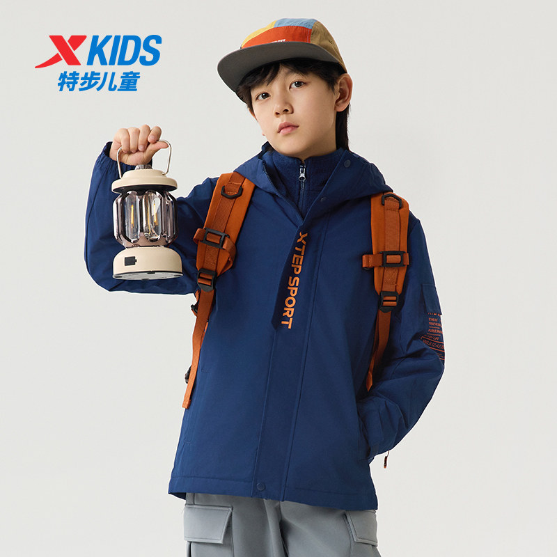 特步童装 新款 男童厚保暖防风运动服风衣冬装 儿童外套2026年春秋季