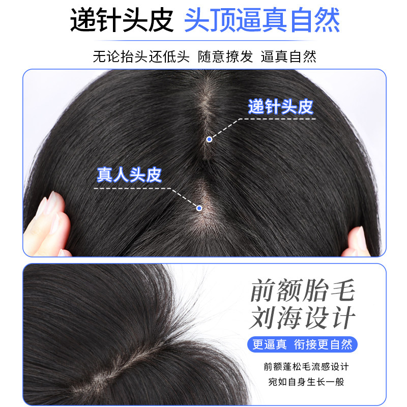 假发片女头顶补发量高颅顶全真发遮白发自然前额刘海片胎毛 美禾