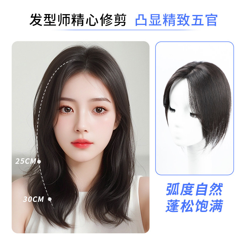刘海片 高颅顶假发片女增发量蓬松真发遮头顶白发 双递针法式 美禾