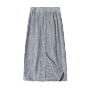 外贸千鸟格半身裙 显瘦包臀女士中长款 时尚 开叉裙子07062 春秋新款由