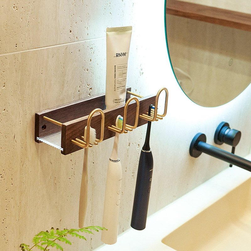 收纳 电动牙刷置物架免打孔高级感实木卫生间放牙膏牙杯架子壁挂式