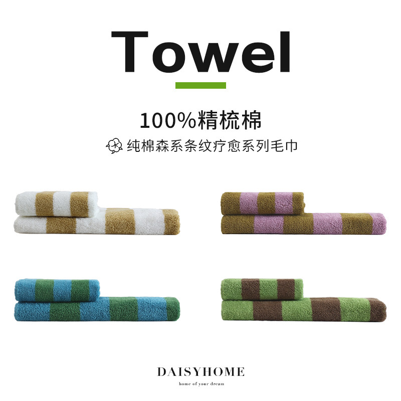DAISYHOME森系条纹毛巾浴巾纯棉精梳棉大人小孩通用柔软亲肤吸水由