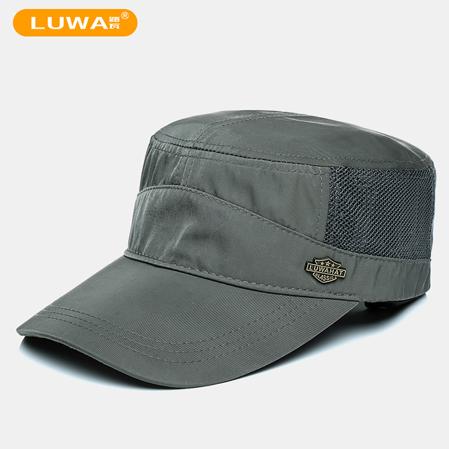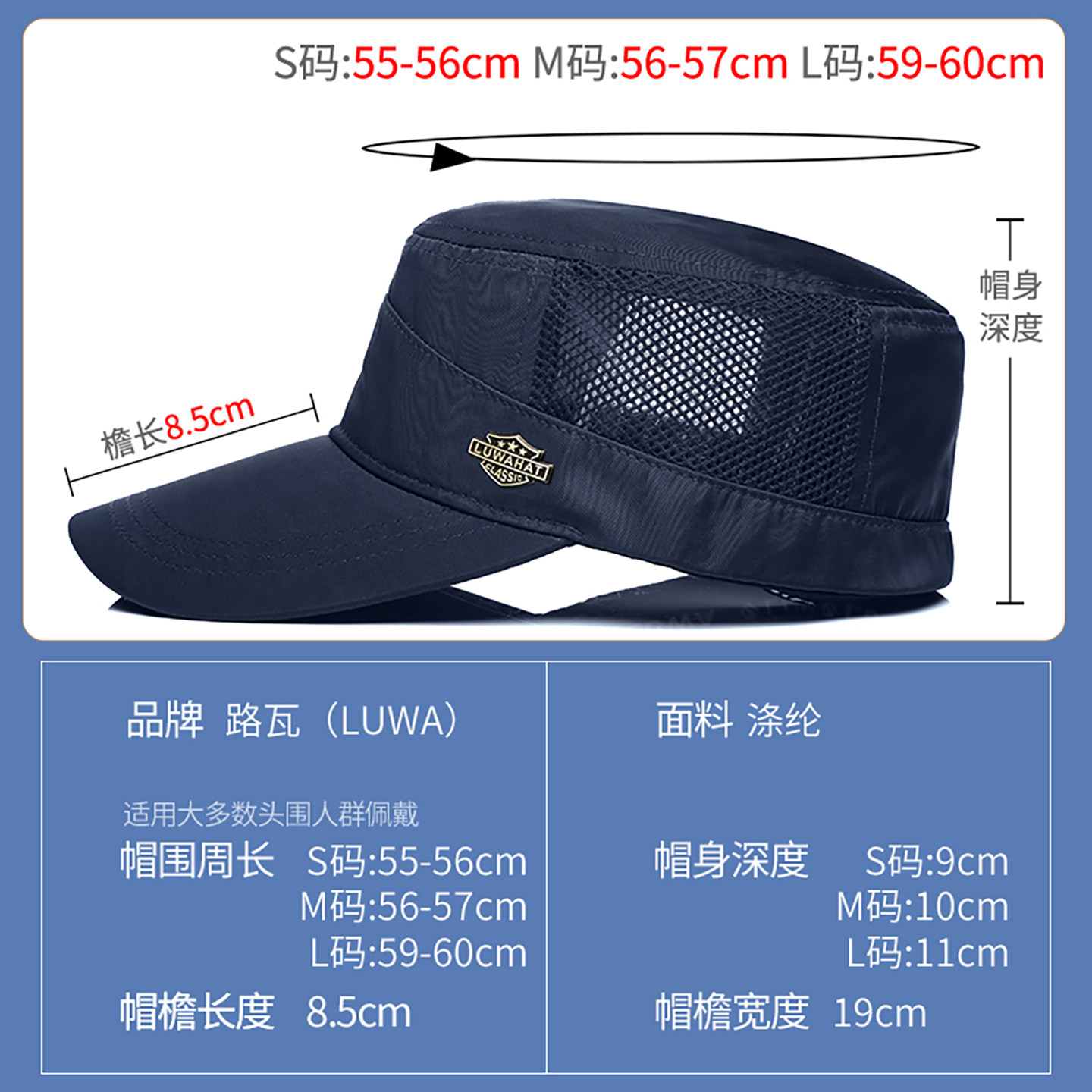 路瓦全封口大码 户外防晒鸭舌帽 平顶帽男中老年后封口透气帽子夏季