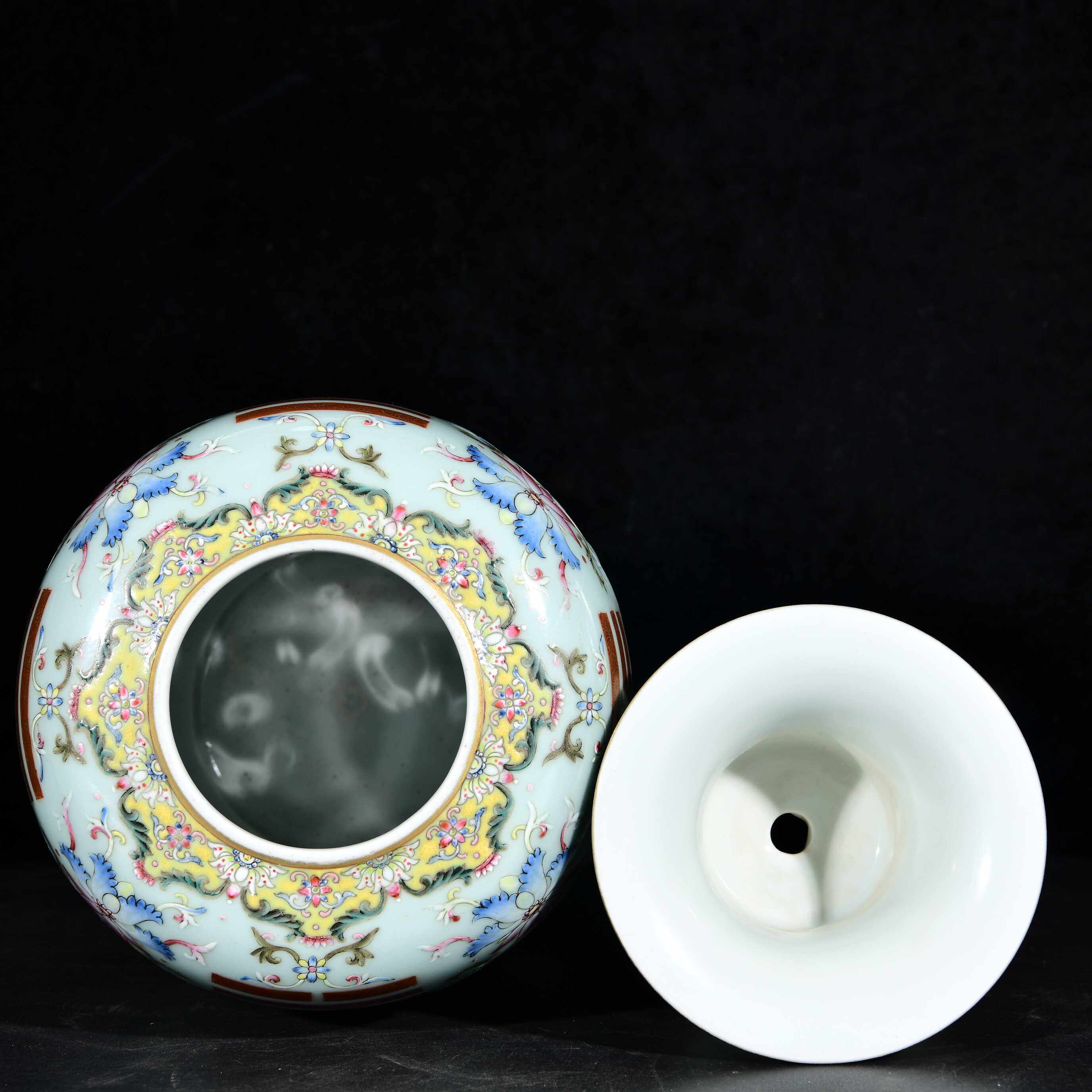 为您提供商品大清咸丰八年蔚秀园主人制洋彩缠枝莲真金八卦纹阴阳交泰专心瓶的详细介绍,