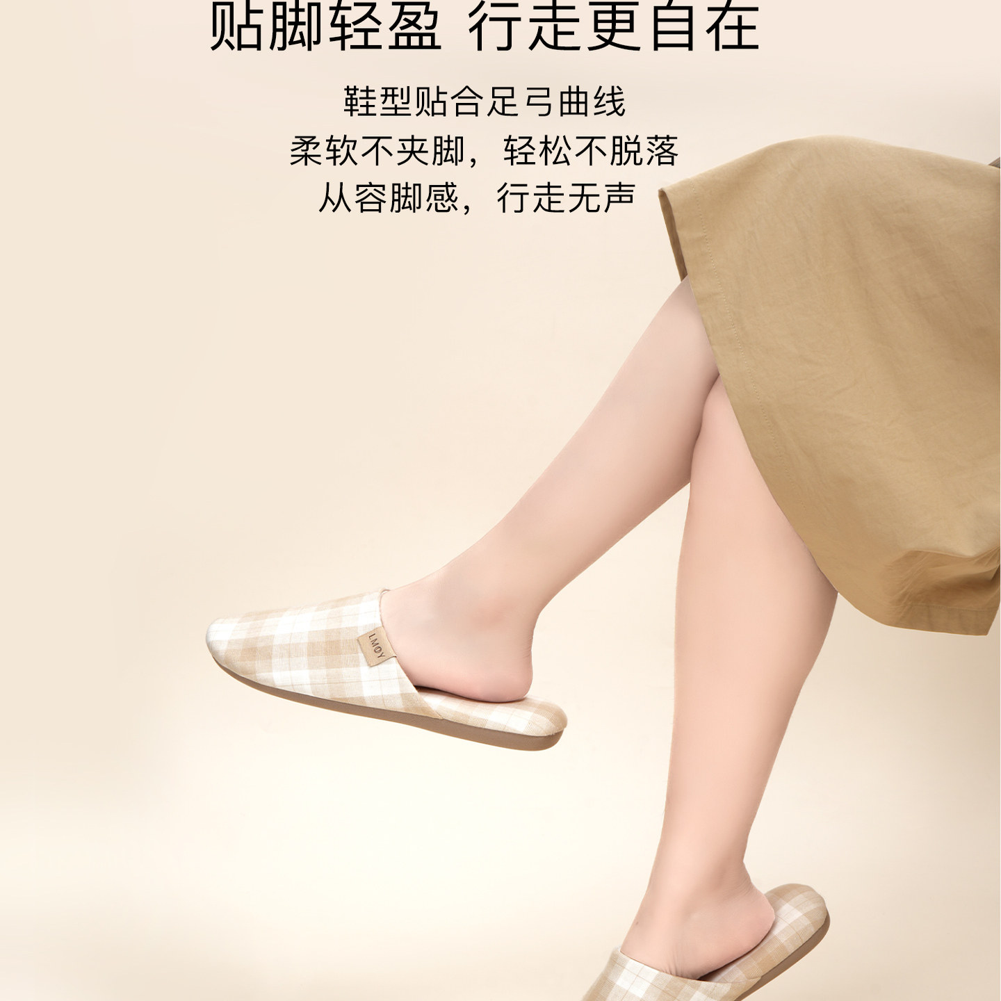 居韵拖鞋 室内家居棉拖鞋 防滑棉质麻布静音女士拖鞋 女四季