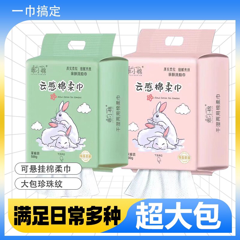 乖小棉500g挂墙底部抽加厚美容巾棉柔巾纯棉加大一次性清洁多用由