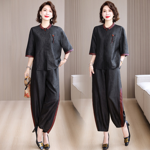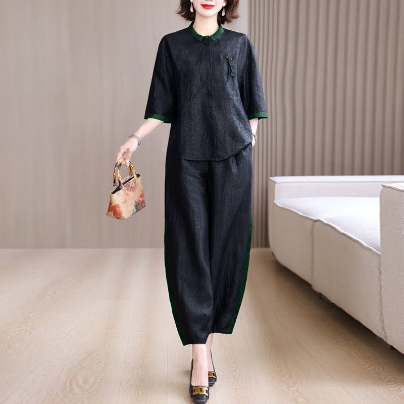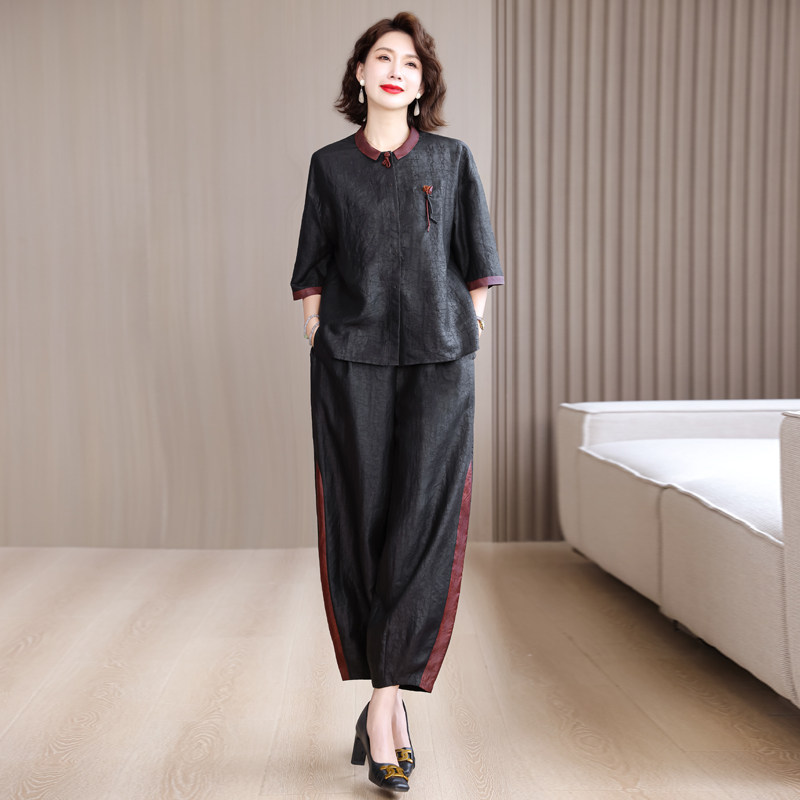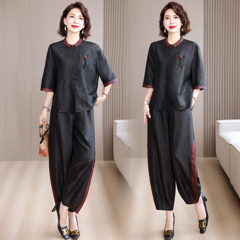 高端大牌桑蚕丝哈伦裤 新中式 国风真丝香云纱两件套夏季 妈妈装 套装