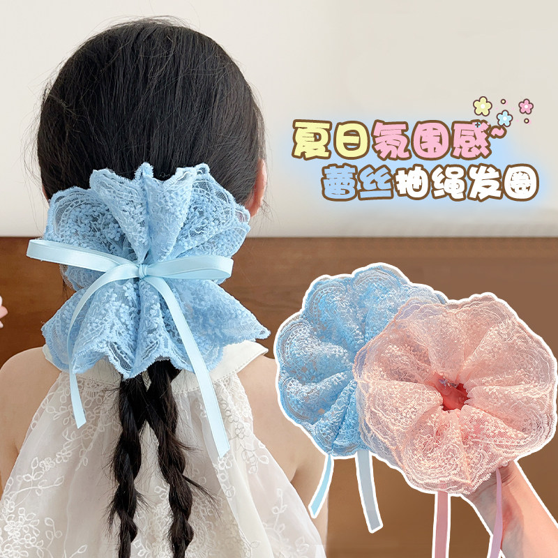 儿童蕾丝抽绳大肠发圈女童丸子头头花发绳宝宝扎马尾头绳女孩发饰