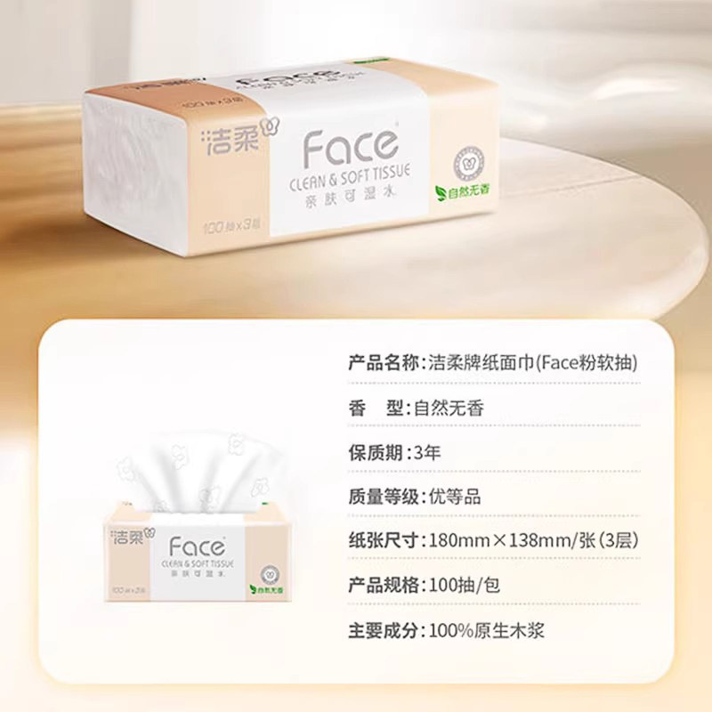 为您提供商品洁柔粉Face抽纸自然无香可湿水3层100抽48包实惠装 k姐推荐的详细介绍,