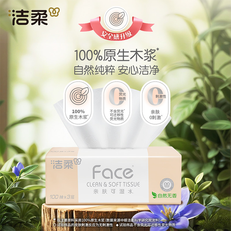 洁柔粉Face抽纸自然无香可湿水3层100抽48包实惠装 k姐推荐