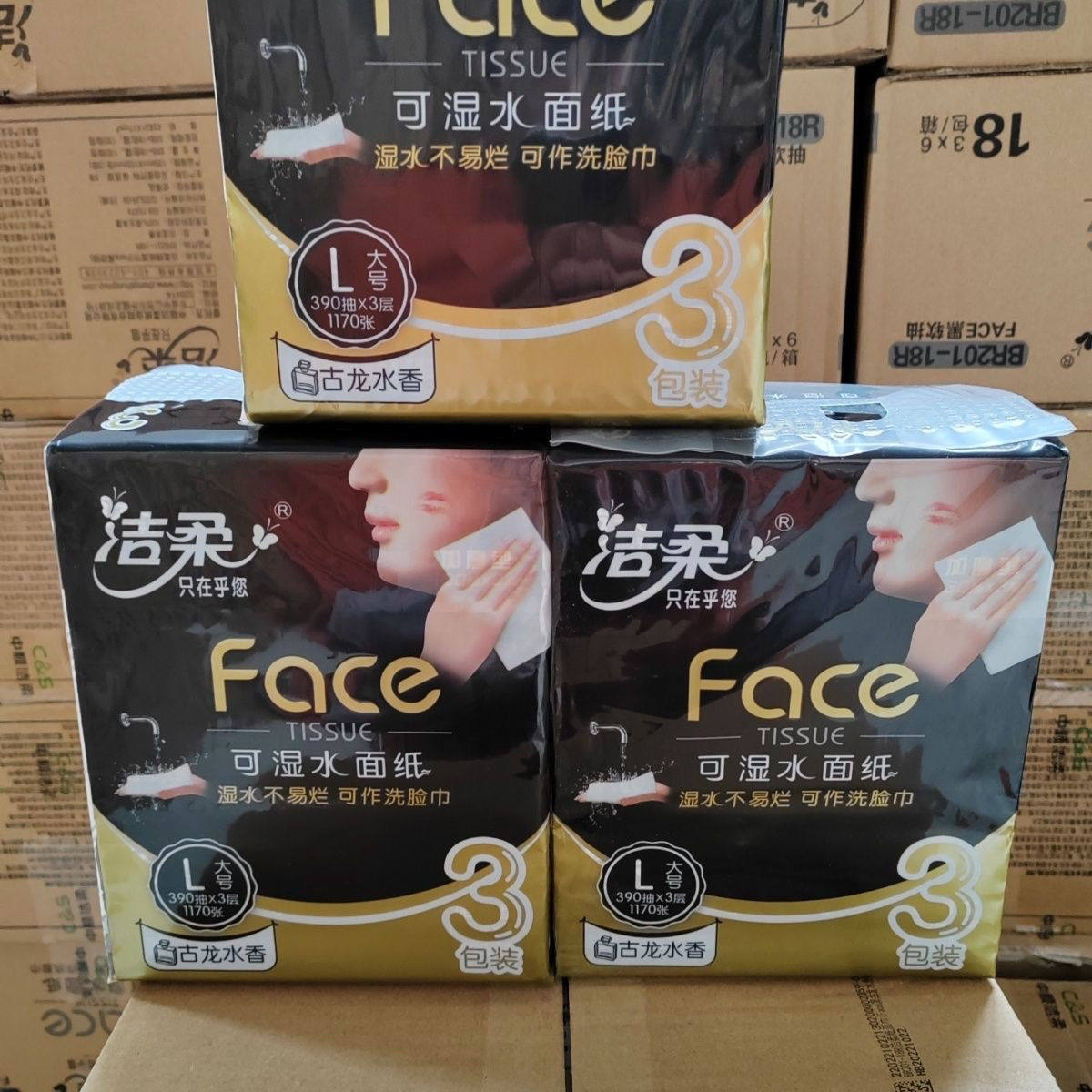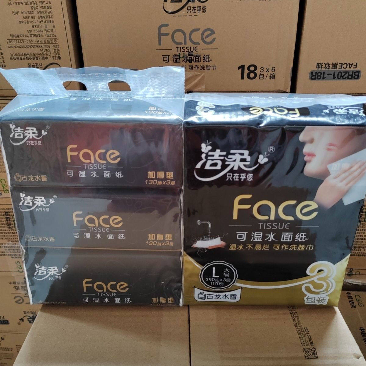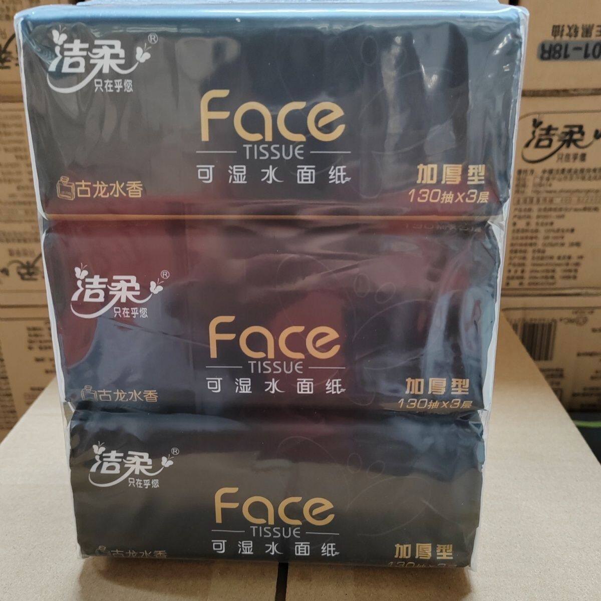 为您提供商品洁柔抽纸黑Face古龙水香餐巾面纸可湿水加厚130抽三层L大包家庭装的详细介绍,