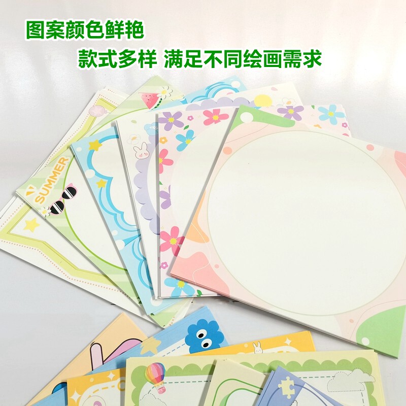 28cm彩色边框硬卡纸幼儿园儿童创意美术绘画纸外方内圆空白铅画纸
