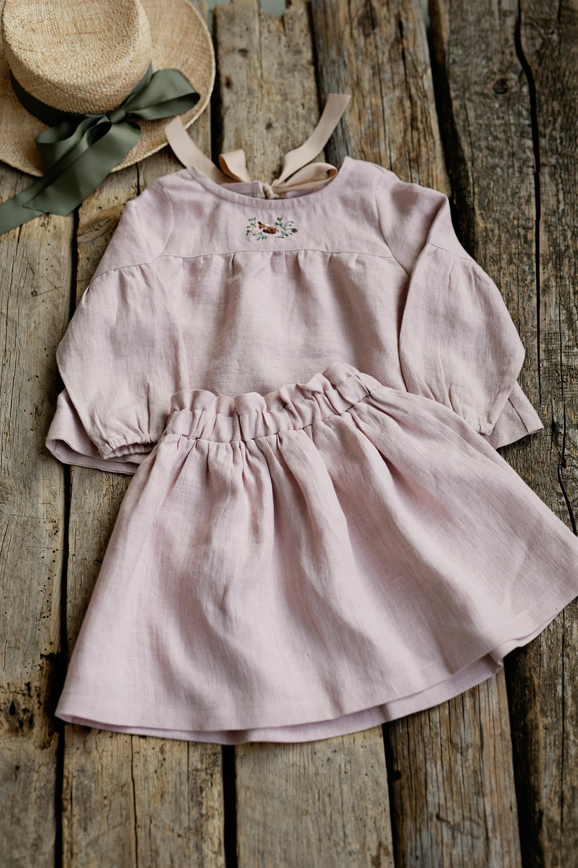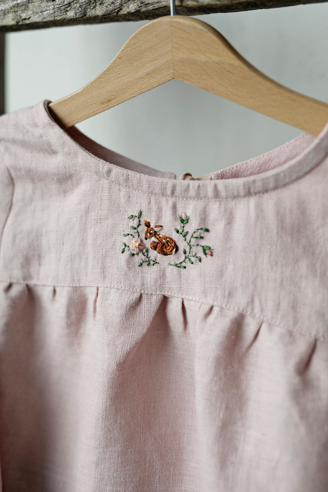 夏套装 3767 手作刺绣女童上衣休闲衫 衿依亚麻大爱丽丝儿童亚麻衬衫