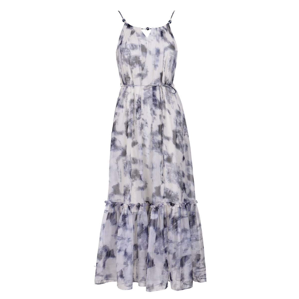 RUISHI芮时 花朵系带宽松度假风荷叶边连衣裙子女夏 云絮柔漾
