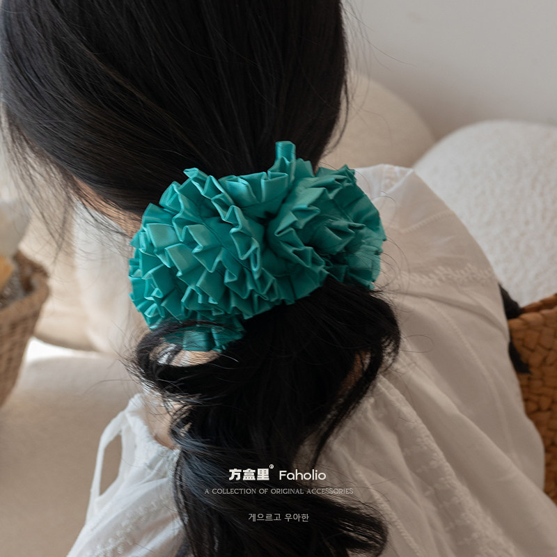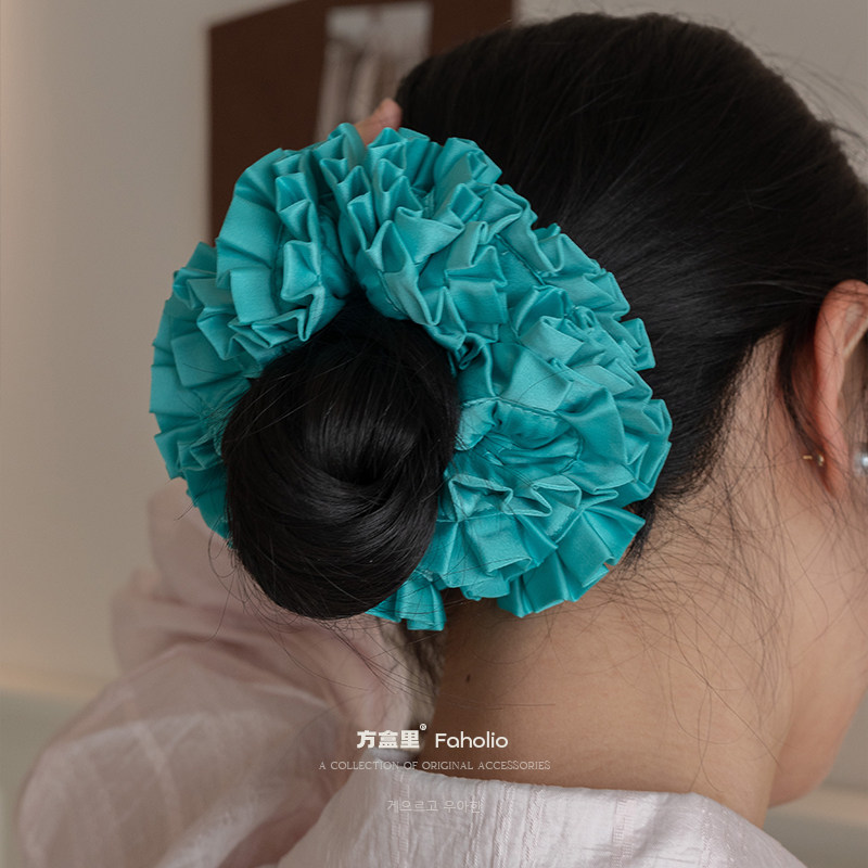 mona手作百褶花球大肠发圈重工缎面褶皱花苞丸子头发饰 张圆英同款