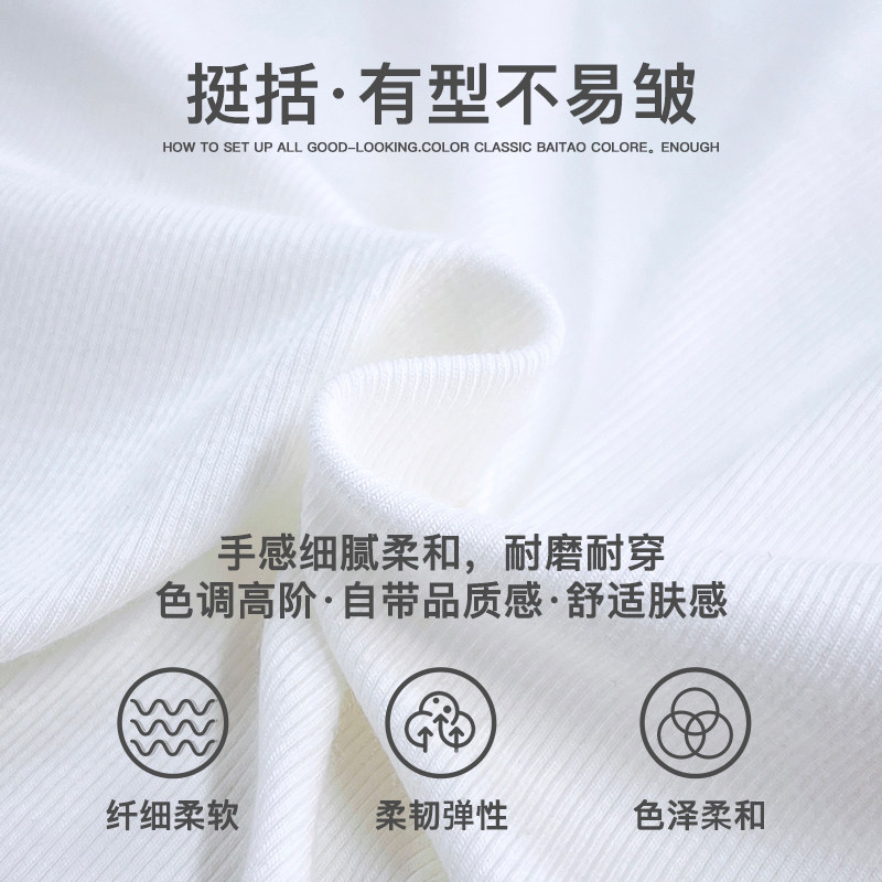上衣女纯色打底衫 内搭小白T 薄款 短袖 纯棉 网易严选白色t恤男夏季