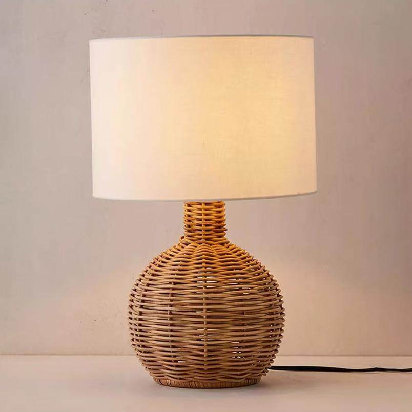 侘寂风台灯中古卧室复古床头灯民宿酒店设计师藤艺编织氛围灯 日式