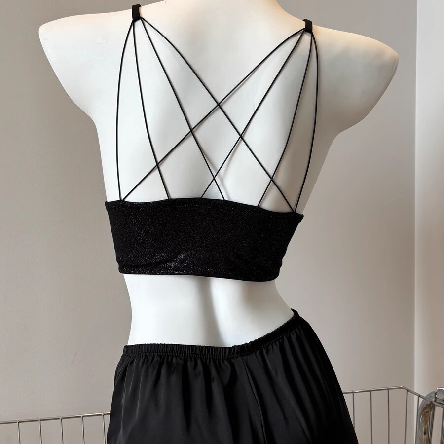 美背交叉吊带女内搭带胸垫小背心细肩带文胸深v性感法式 内衣新款由