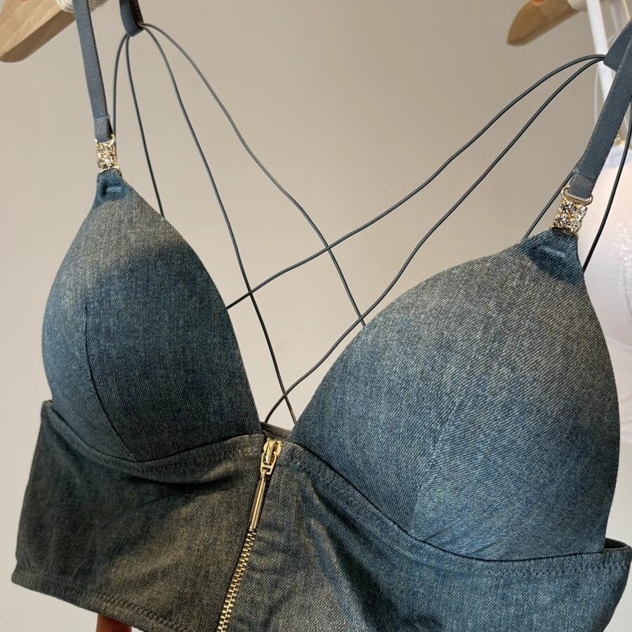 美背交叉吊带女内搭带胸垫小背心细肩带文胸深v性感法式 内衣新款