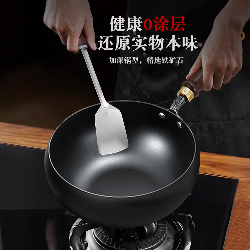 炒锅家用不粘锅无涂层燃气灶适用 章丘炒菜锅传统铁锅官方旗舰老式