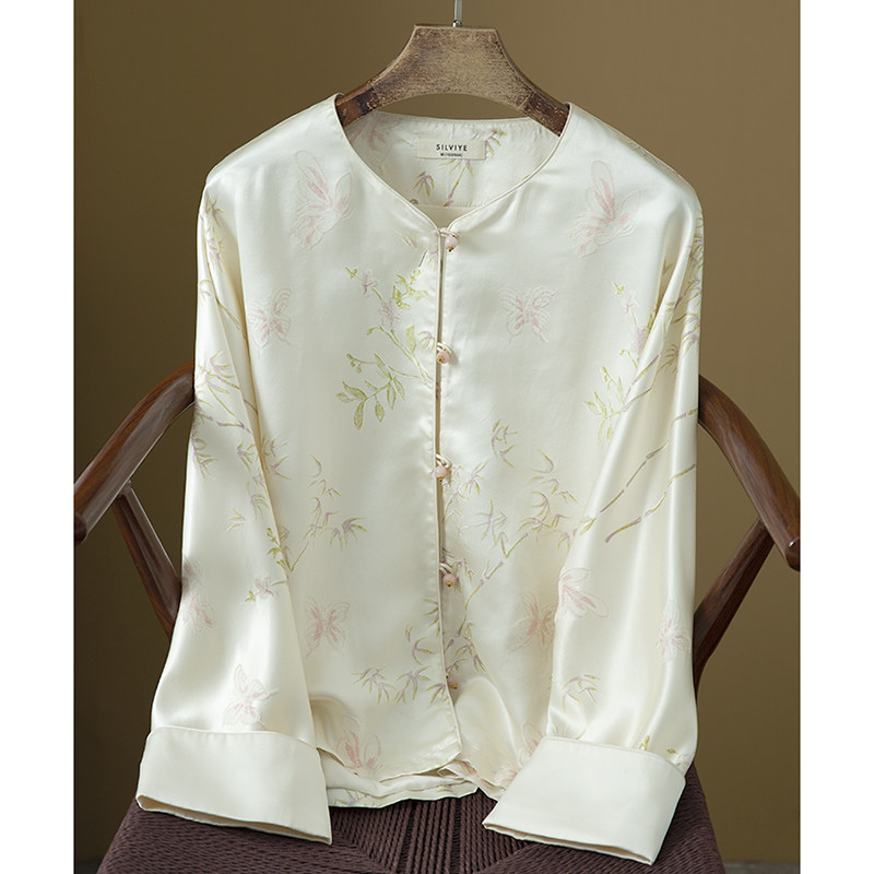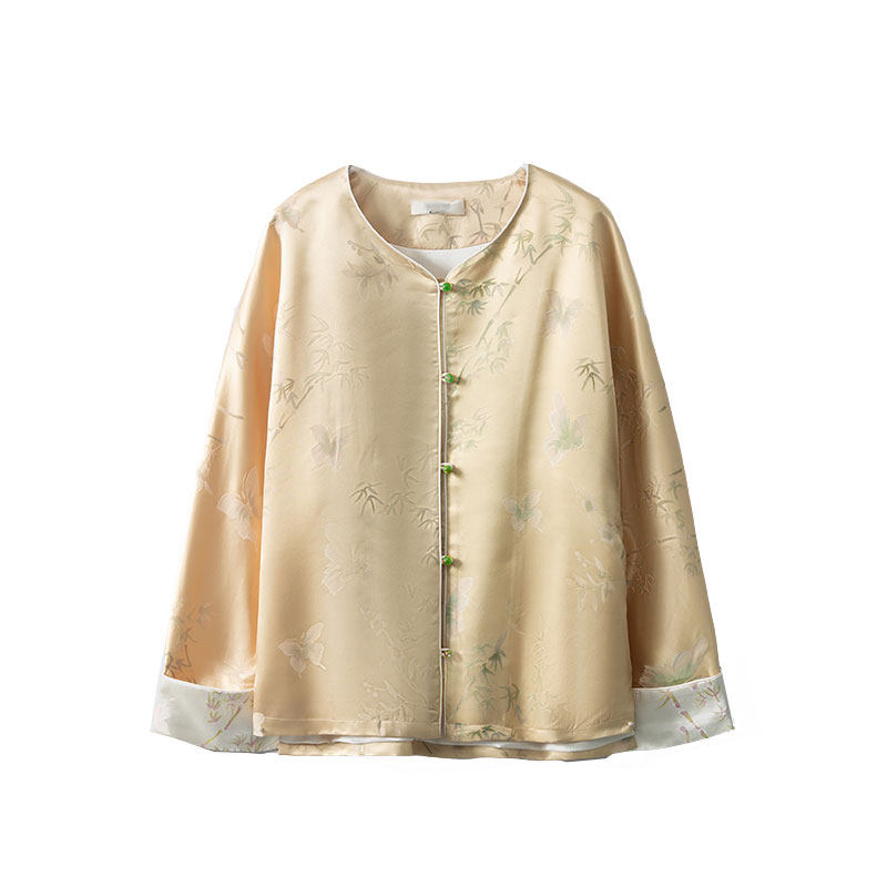 为您提供商品高端 国风真丝提花缎面开衫 上衣女长袖 提花外套 32姆米重磅新中式的详细介绍,