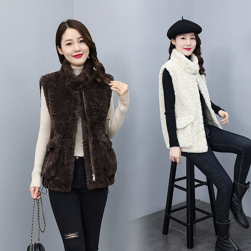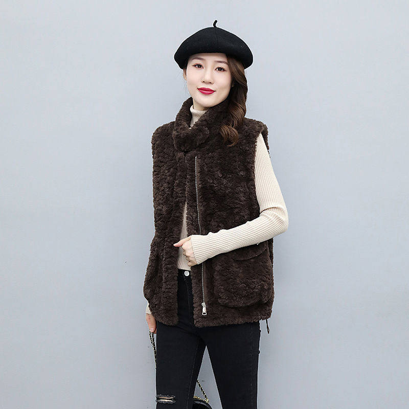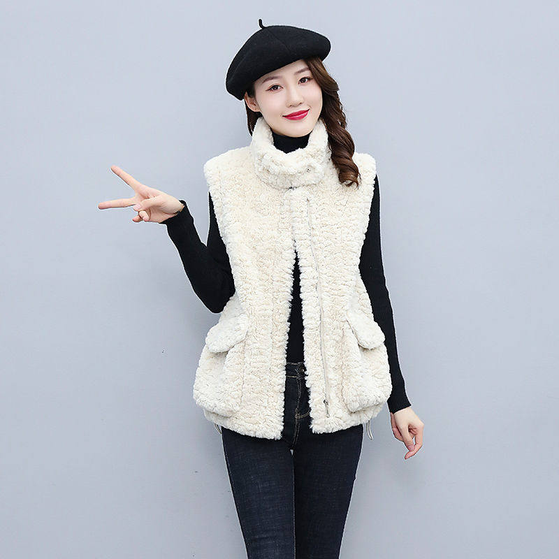 韩版 百搭宽松显瘦保暖加厚外套 马甲女2022年秋冬新款 羊羔毛短款由