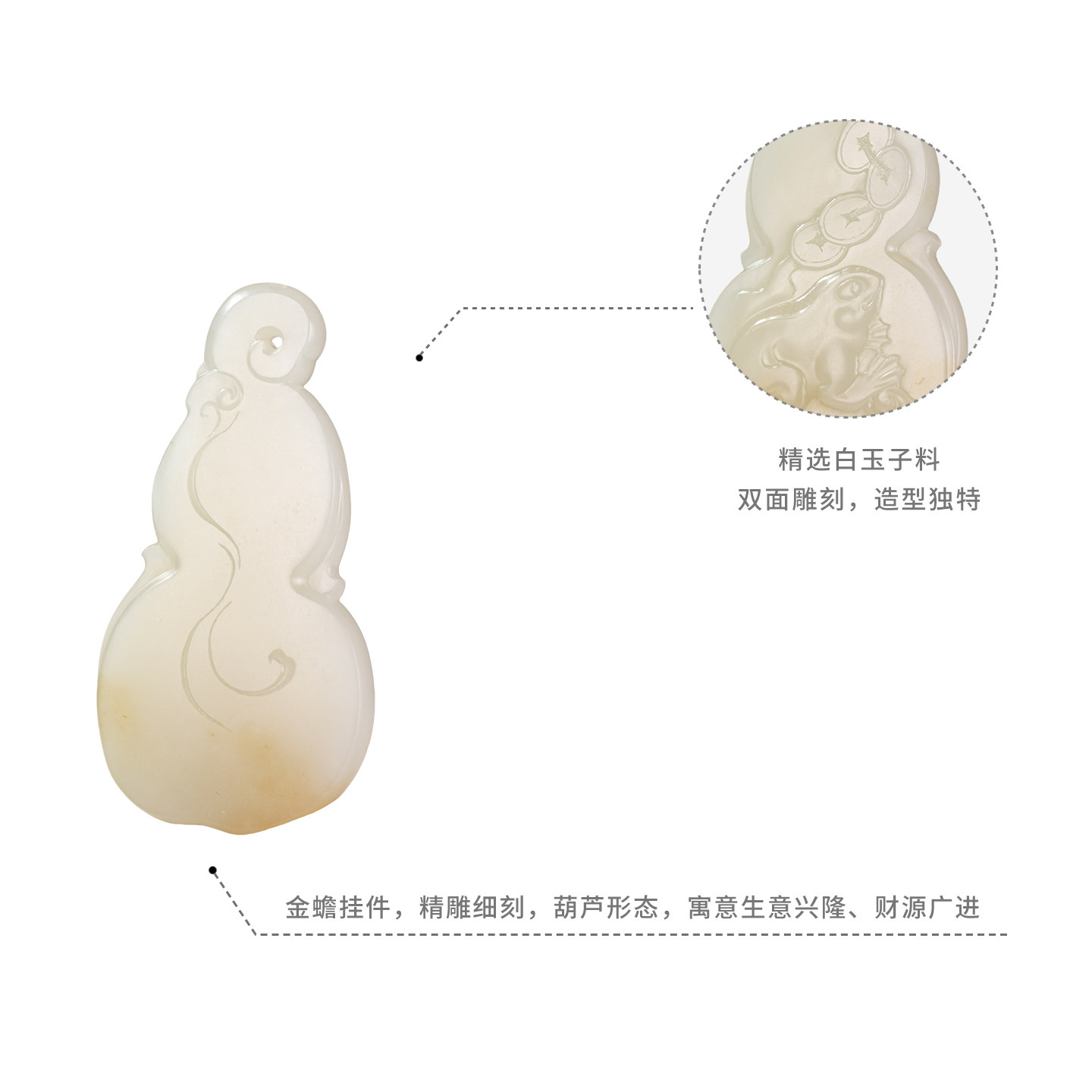 为您提供商品和合玉器和田玉子料白玉福禄金蟾挂件玉石葫芦吊坠项链坠子男女的详细介绍,