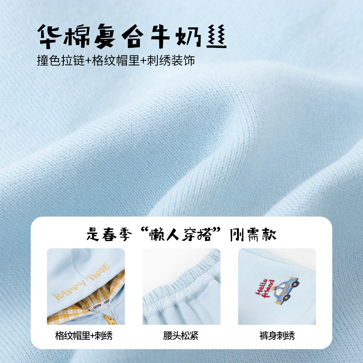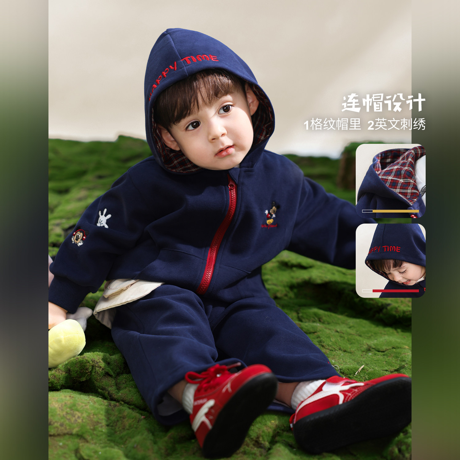 为您提供商品小O爸男婴童 春秋2026新款 格纹连帽蓝色婴儿气质春装 宝宝运动套装的详细介绍,