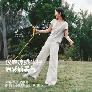 26新款 森柔森马牛仔裤 女夏季 凉感抑菌宽松毛边汉麻阔腿喇叭裤 长裤