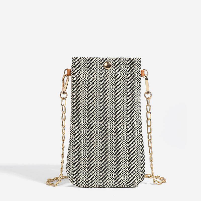 钱包手机包两用女2023新款 手机包草编零钱小包 单肩斜挎包编织竖款